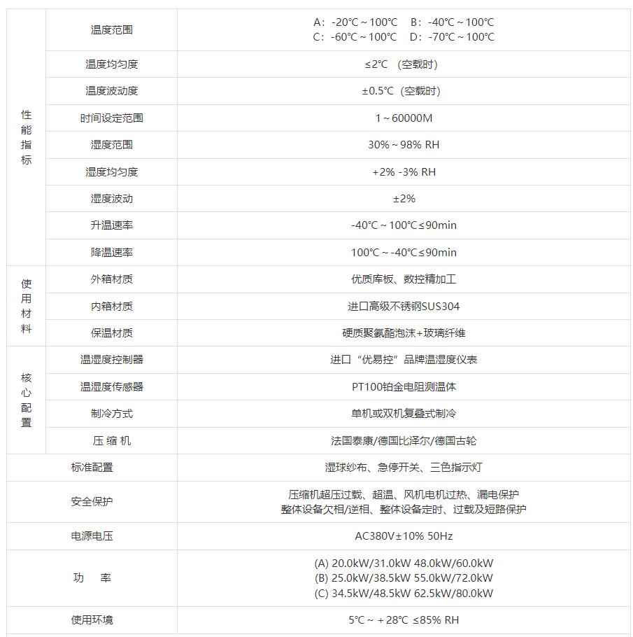 | 升溫速率 | -40℃~100℃≤90min | ||||||