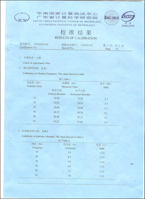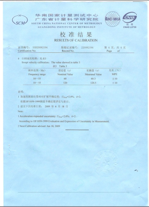 >>振動試驗臺校準證書-廣東計量院-ABB集團