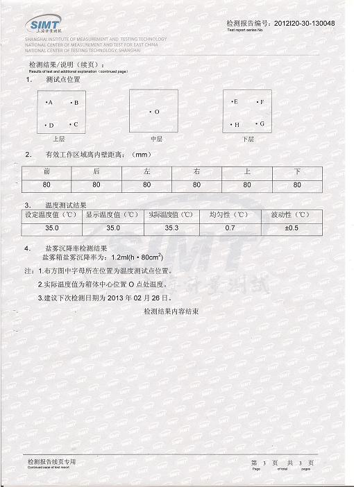 鹽霧腐蝕試驗箱檢測報告-上海計量院-富金實業