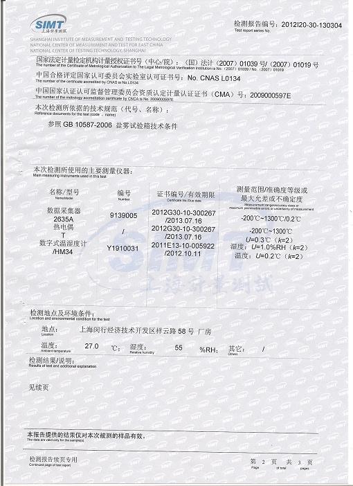 >>鹽霧腐蝕試驗箱檢測報告-上海計量院-勝利油田