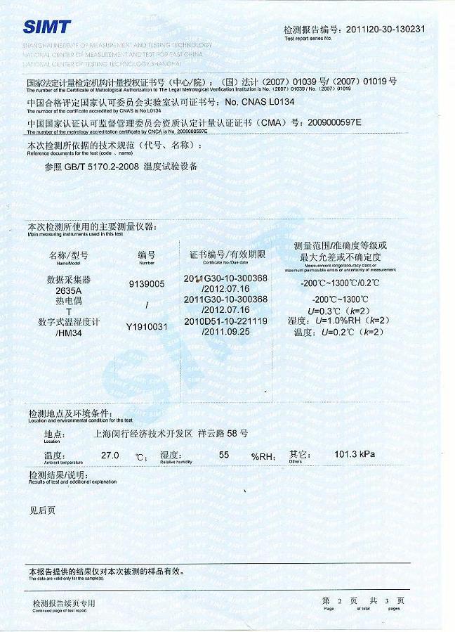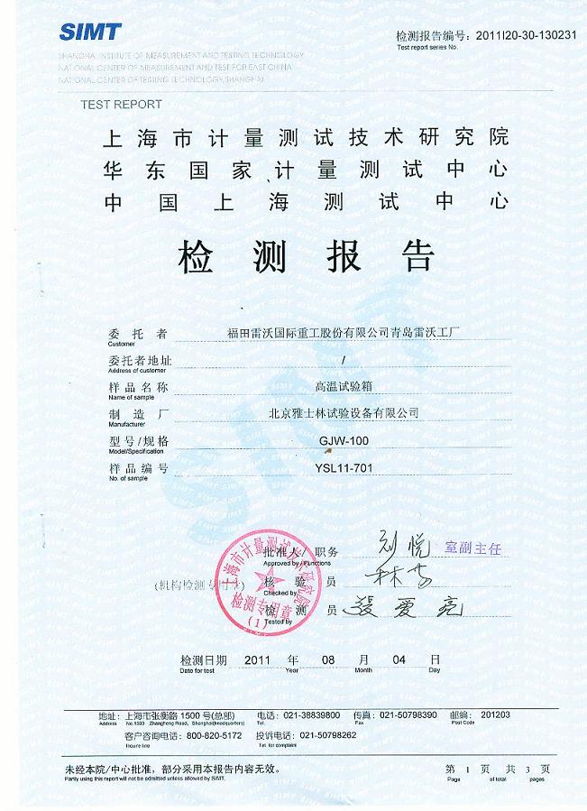 >>高溫試驗(yàn)箱檢測(cè)報(bào)告-上海計(jì)量院-福田雷沃