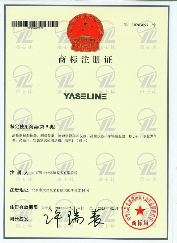 近日,北京雅士林試驗設備有限公司(以下簡稱“雅士林儀器”)注冊的“YASELINE”英文商標,獲得國家工商行政管理總局商標局注冊通過。此次注冊通過的“YASELINE”商標為雅士林儀器近年來全力打造高端試驗箱品牌。 多年來,雅士林儀器堅持貫徹品牌戰略,進行全方位的市場開拓,全力打造“雅士林試驗箱”高端品牌。雅士林儀器實施以品牌求發展的品牌經營戰略,本著“品質卓越,盡善盡美”的質量理念,強化員工素質,加強服務流程的完善和服務技能的提升,建立以顧客為導向的服務系統和服務標準。注重產品技術創新,追求高品質的產品研發,截至目前公司共獲得國家發明、實用新型與外觀專利多項,引領了國內環境試驗設備行業技術創新的高度,廣大用戶對“雅士林試驗箱”品牌信賴有加,市場占有率逐年提高。 YASELINE商標的取得,一方面有利于公司加強對品牌及注冊商標的保護,是對雅士林儀器品質實力、品牌價值、品牌建設成果的肯定,也是對雅士林儀器資產規模、市場占有率、品牌影響力、社會口碑等綜合實力的高度肯定;另一方面對于提高公司品牌和市場知名度,打造高端環試品牌,開拓國際市場等具有積極意義。