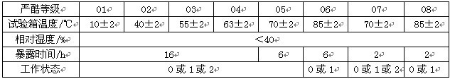 條件試驗(yàn)12方法:溫?zé)幔ㄏ聢D為條件試驗(yàn)方法12溫?zé)岬膰?yán)酷等級(jí)表)