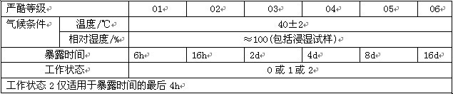 條件試驗(yàn)13方法:凝露(下圖為條件試驗(yàn)方法13凝露的嚴(yán)酷等級(jí)表)