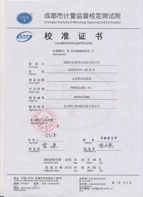 >>鹽霧腐蝕試驗箱校準證書模板下載