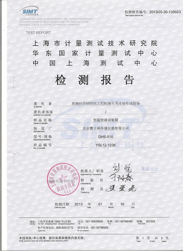 >>恒溫恒濕試驗箱檢測報告模板下載--上海計量院