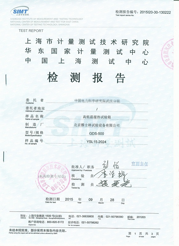 >>高低溫濕熱試驗箱檢測報告模板下載--上海計量院