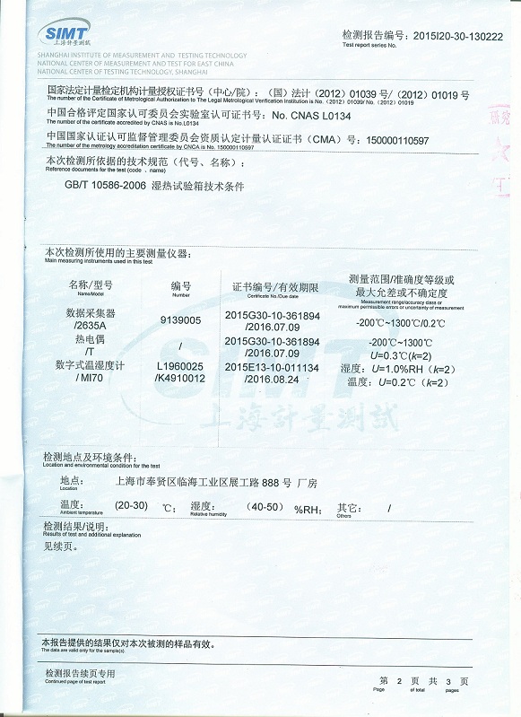 ·高低溫濕熱試驗箱檢測報告模板下載--上海計量院