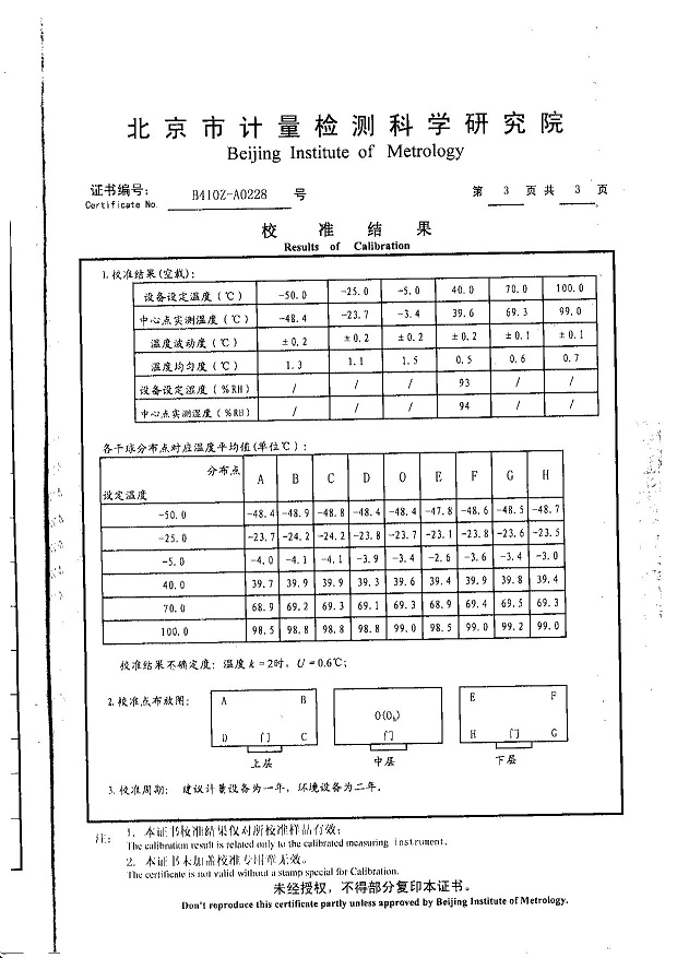 ·高低溫濕熱試驗箱校準證書模板下載—北京計量院